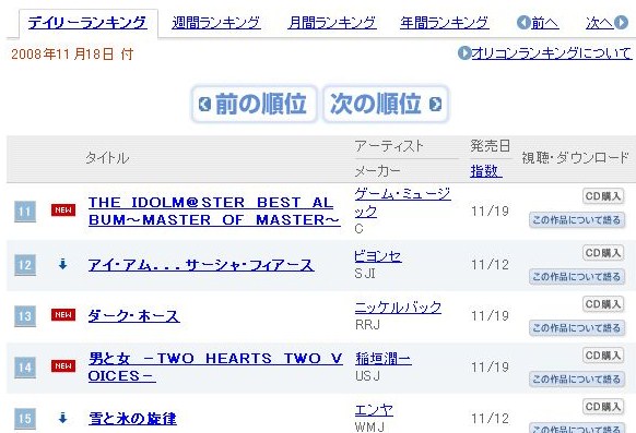 なんとなーくオリコンでマスターオブマスターがランキングにないかみてみた