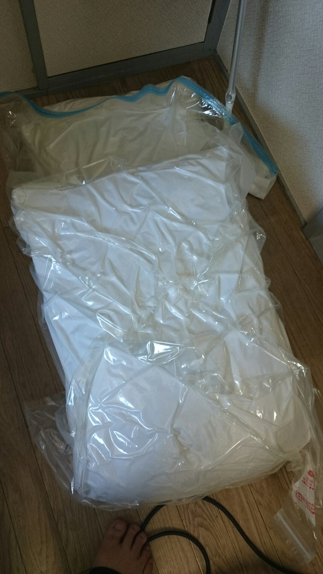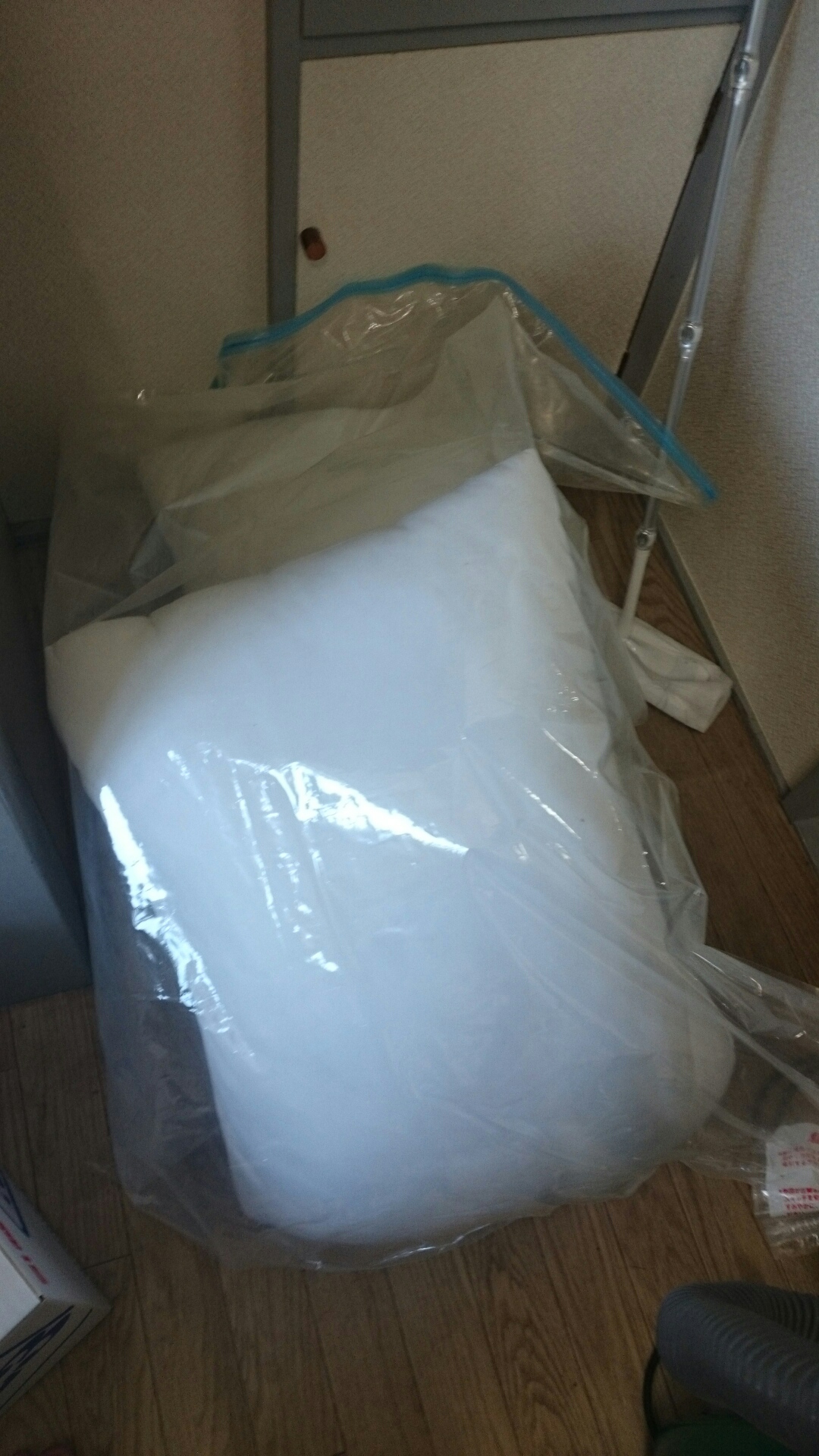 抱き枕をふとん圧縮袋に折りたたんでつめこみ、圧縮できたのはよかった