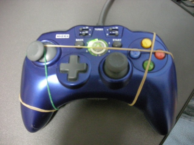 その上から2重にした輪ゴムを縦にAボタン固定