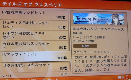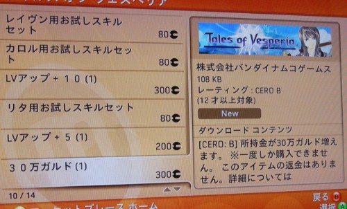 マーケットプレースみてたら、ヴェスペリアに新コンテンツがきてるみたいなのでみてみた