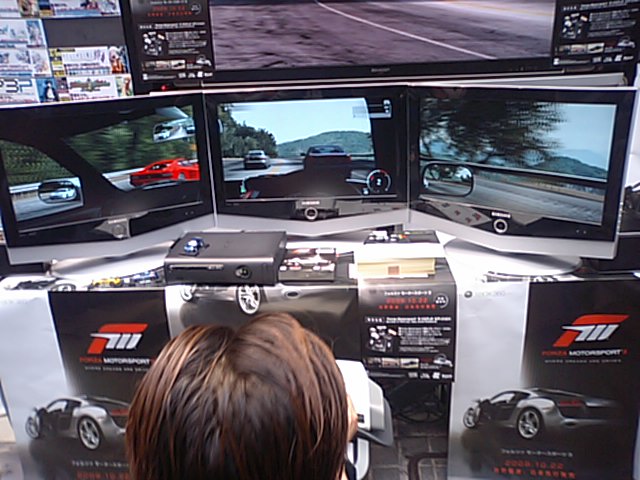 秋葉メッセサンオーにて、フォルツァ3の体験会を3画面バージョンでやるというんでいってみた