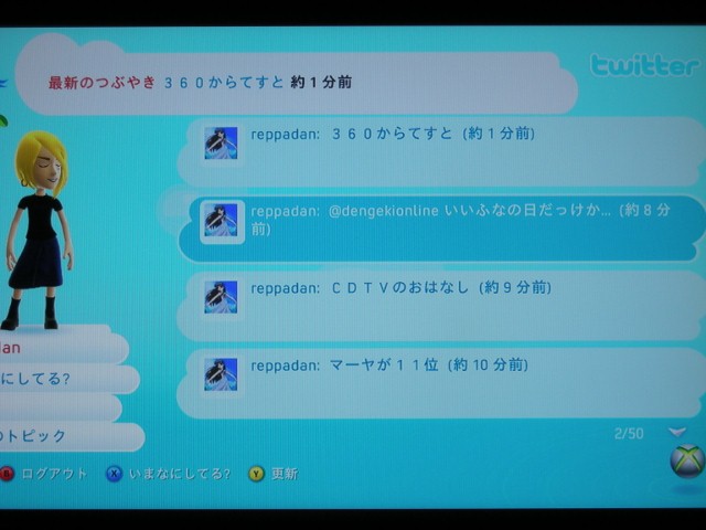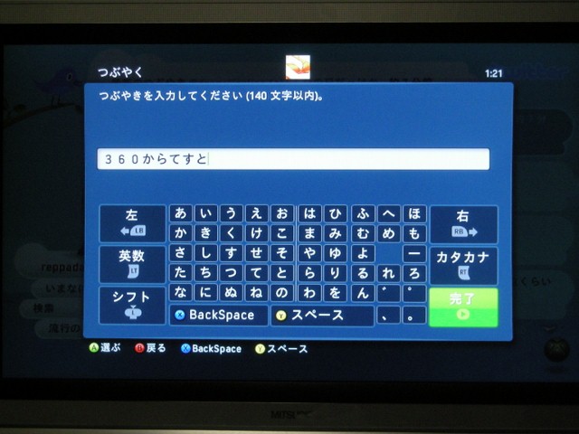 ゲーム中じゃないにしろ、つぶやこうとしたらダッシュボードから起動しないとだめだっていうのがだめだね